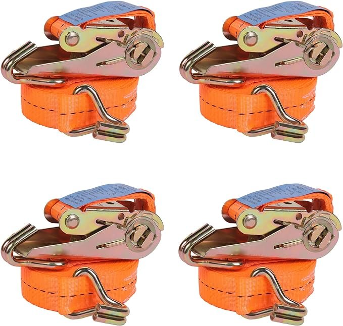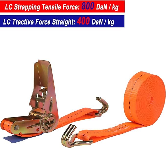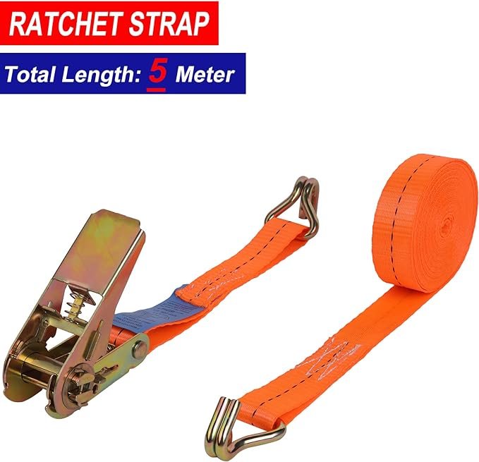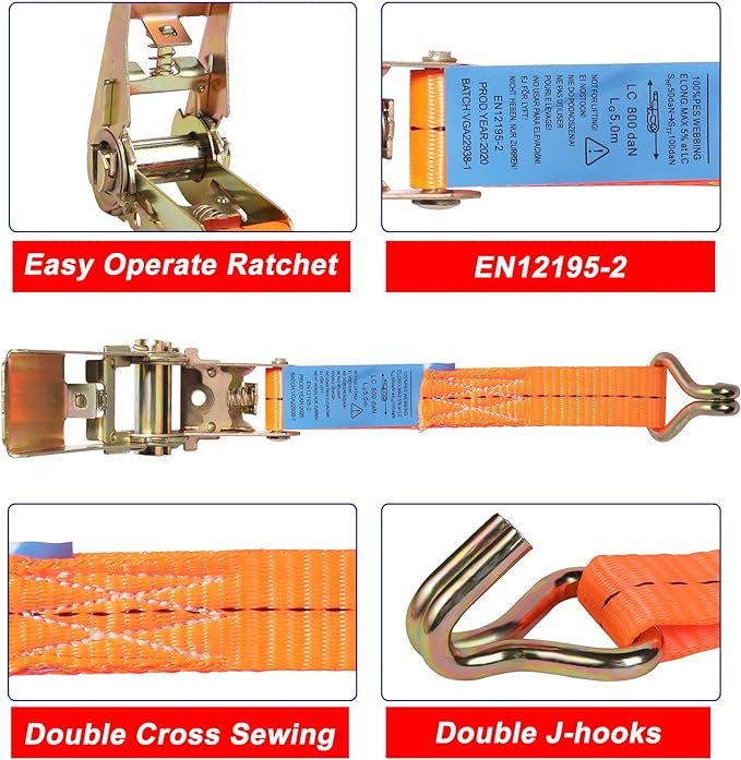 4 adet 800 kg 5 m mandallı gergi kayışı, bağlama kayışı ve mandallı, kancalı, sabitleme kayışı, turuncu, 25 mm 800 daN (DIN EN 12195-2)